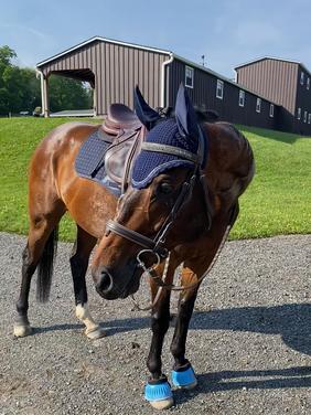 Affectionally called Grandpa, Grammy, Graham Crackers and Grumpy has been ridden and leased by students working in dressage and jumpers. We have taken him XC schooling and he while he went over logs and small coops, eventing and jumping doesn't seem to be the thing that makes him happiest.